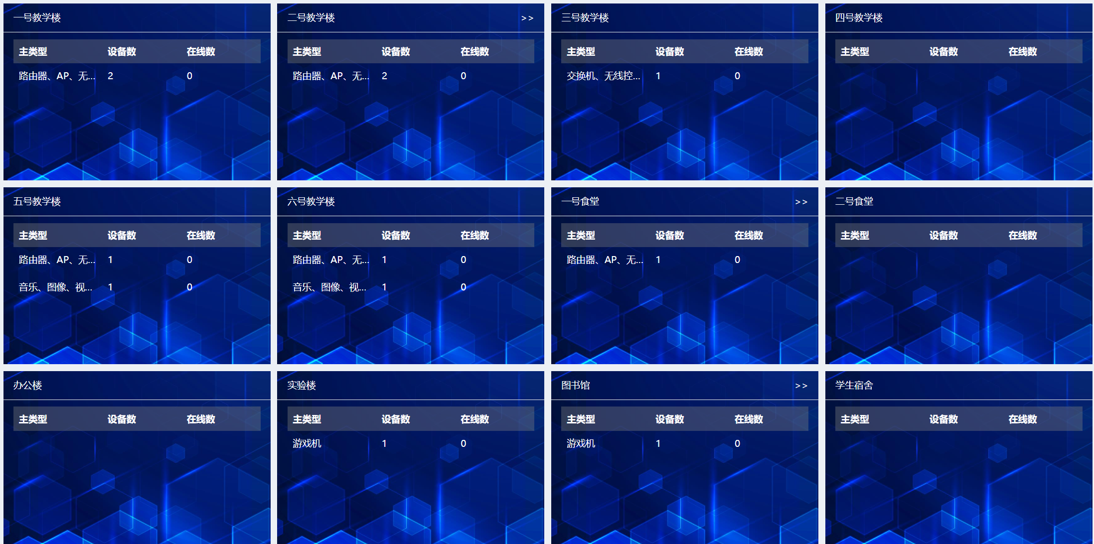 • 实时可视化分析终端数据:建立全网资产台账,按类型、位置、部门实现终端数据数量、在线状态等大屏展示,终端状态一目了然。
